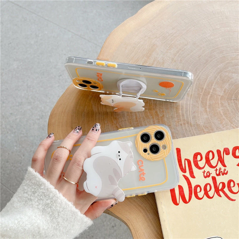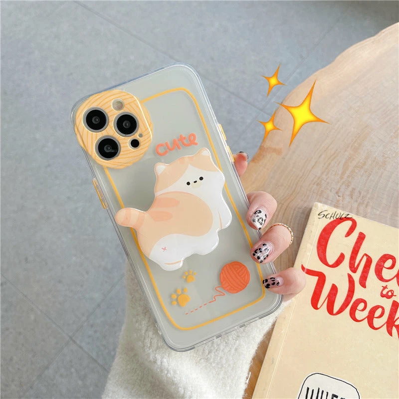 This cartoon design has an adorable cat and ball of yarn design to bring you happiness. Protect your iPhone with this kawaii illustration, and feel playful every time you pick it up! Hold your phone up with the pop-up function for easy watching.