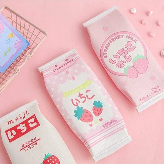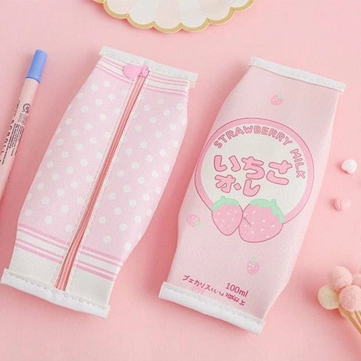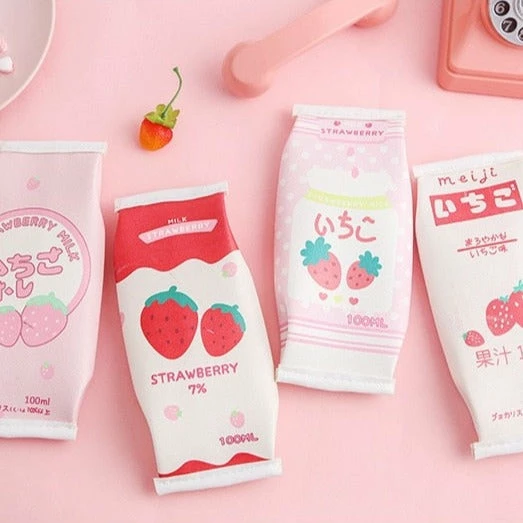 Each case features a soft strawberry milk pouch design, with an easy zip opening, as well as providing plenty of space for your stationery and more - Perfect for Gifting