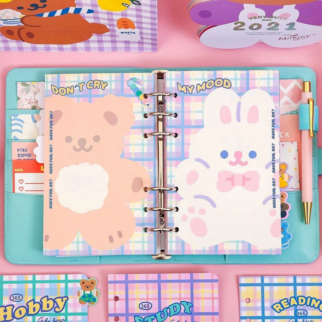 Comes in 4 different bear styles to write down your notes and ideas, or even just doodle. Each set features: 1x A6 Journal Diary, 60x Various Design Pages, 6x Divider Pages