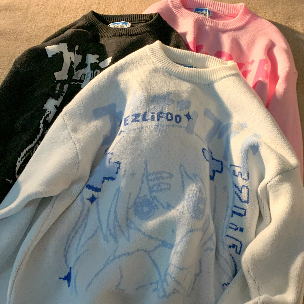 This simple but bold sweatshirt is sure to give your look a kawaii edge with its oversized fit. Featuring an outline of an anime girl on the front of the sweatshirt with Japanese letters. Easy to match with any outfit you have in mind! This is perfect for anyone looking to throw a long sleeve to look cute and chic.