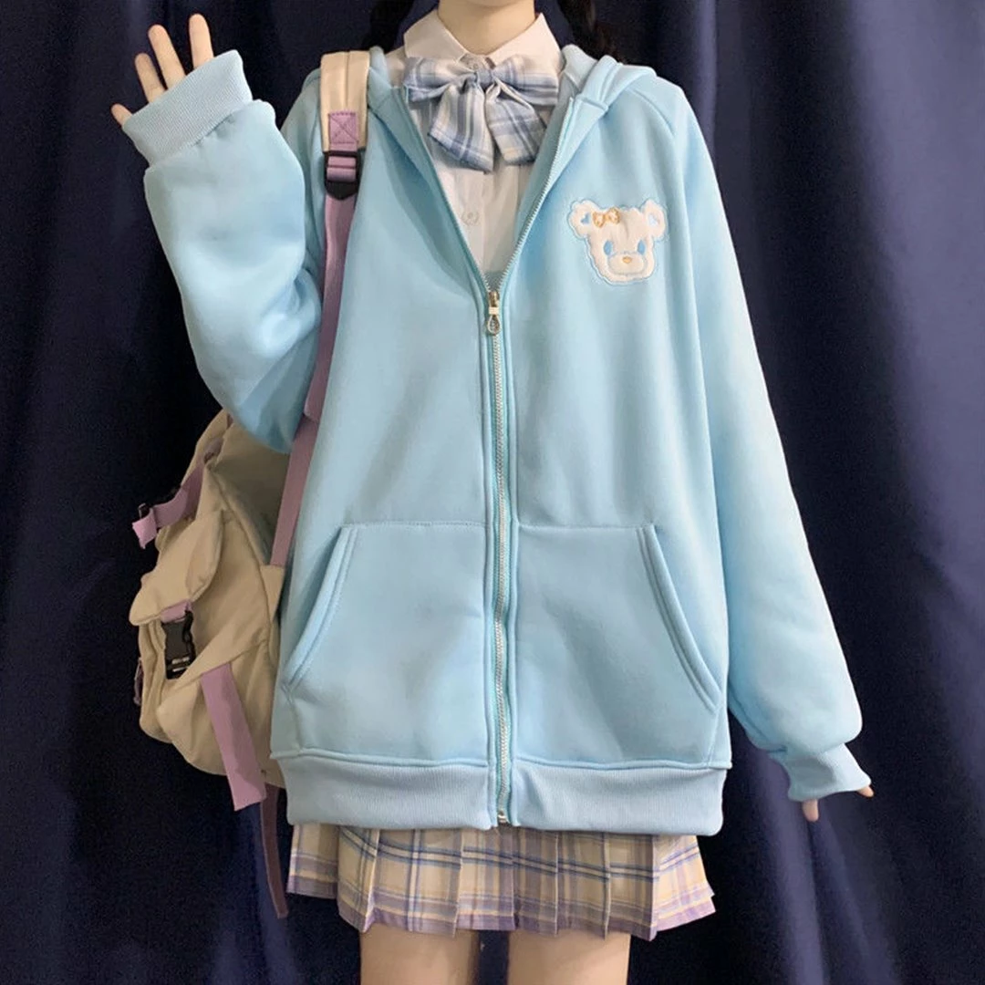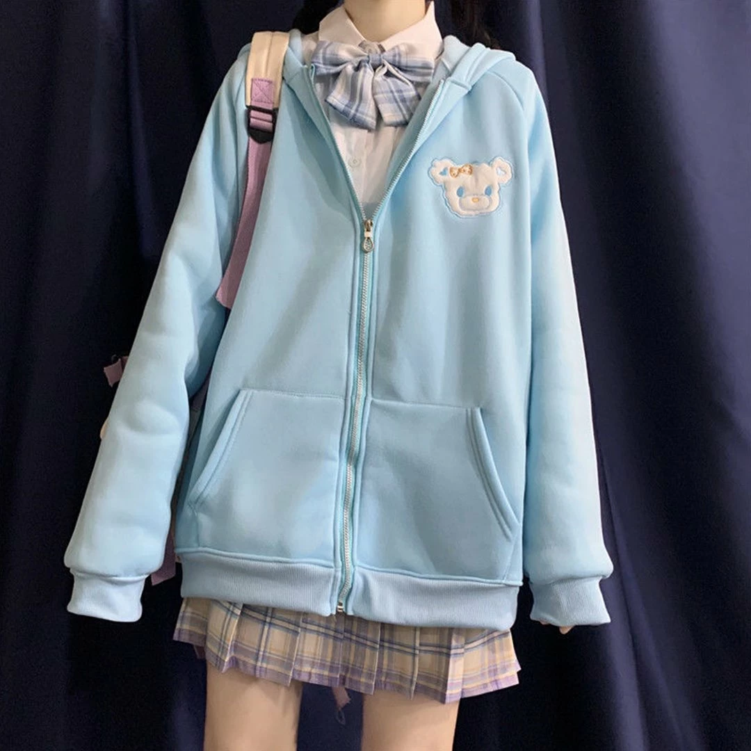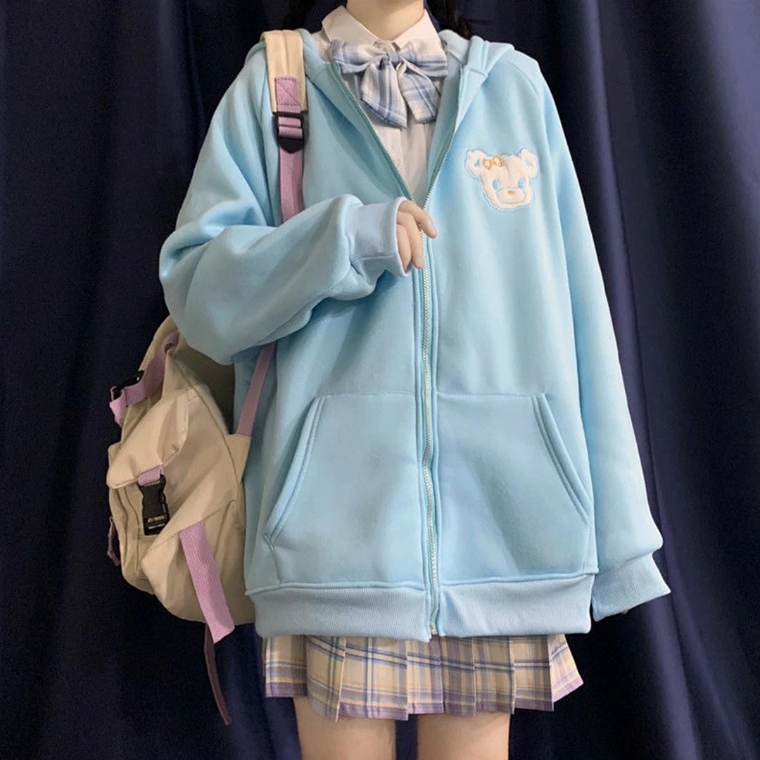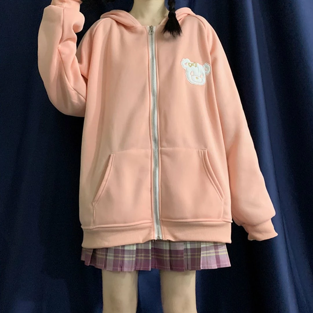 Sometimes we wish we were a cute little bunny. We at Kawaiies want this dream to come true, so we made this bunny zip-through hoodie just for you.