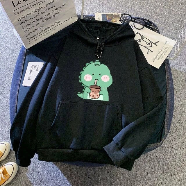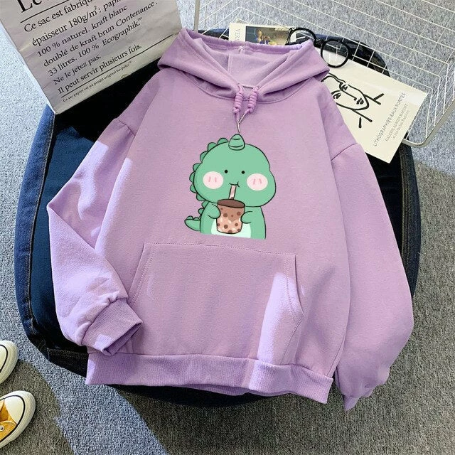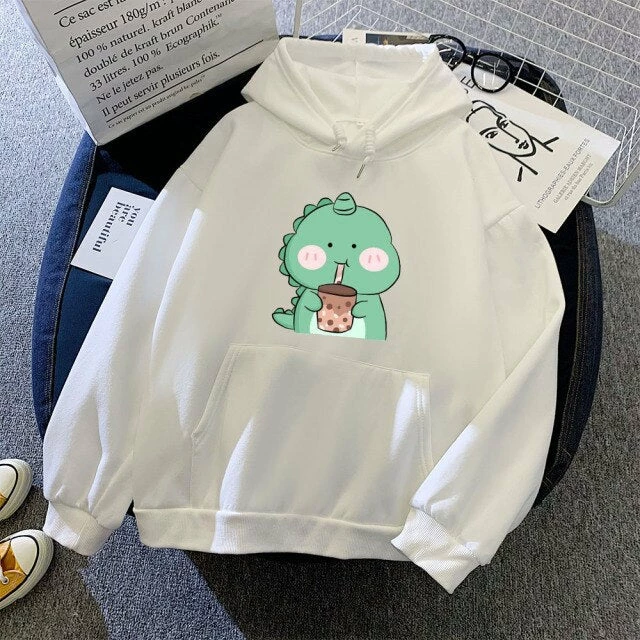 Stay groovy all year long with this hoodie. This cozy hoodie for both boys and girls features a cute dinosaur drinking its favorite bubble tea, a comfy kangaroo pocket, and a comfortable fit. It is made of warm cotton and soft polyester making it comfortable and easy to move around in. Perfect for cool days at home or outdoor activities like shopping, eating, and more.