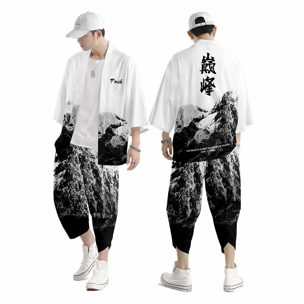 Available in 8 different sizes for all to wear, measurements are shown below. Please be sure that this kimono fits you before purchasing. The first half of the table are measurements for the kimono top and the bottom half are measurements for the trousers.Size (inches) M L XL 2XL 3XL 4XL 5XL 6XL Bust 45 47 50 52 54 57 59 61 Length 28 29 30 30 31 32 33 34 Sleeve 13 14 14 14 15 15 16 16       Size (cm) M L XL 2XL 3XL 4XL 5XL 6XL Bust 115 121 127 133 139 145 151 157 Length 72 74 76 78 80 82 84 86 Sleeve 34 35 36 37 38 39 40 41          Size (inches) M L XL 2XL 3XL 4XL 5XL 6XL Waist 26 27 29 30 32 34 35 37 Hips 47 49 50 52 53 55 57 58 Length 31 31 32 32 33 34 34 35          Size (cm) M L XL 2XL 3XL 4XL 5XL 6XL Waist 66 70 74 78 82 86 90 94 Hips 121 125 129 133 137 141 145 149 Length 79 80 81 83 85 86 87 89         Features