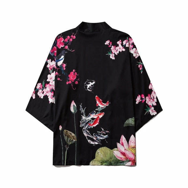They’re a visual feast of traditional Japanese art. Kimonos for men and women feature vivid designs with seasonal sakura cherry blossoms, goldfish carp and other iconic images. Japanese goldfish carp, a symbol of prosperity and happiness.