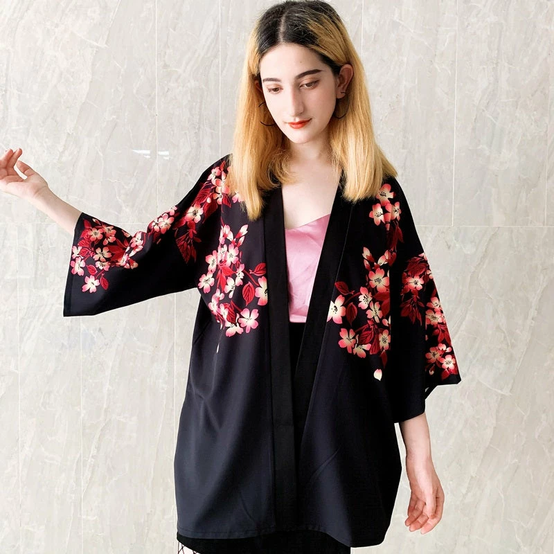 Available in one size only, measurements are shown below. Please be sure that this kimono fits you before purchasing!Size Bust Length Sleeve inches 51 28 12 cm 131 72 34 Features