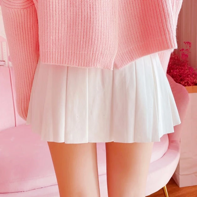 This adorable white skirt is sure to be a statement piece in your wardrobe. Featuring a white cotton polyester blend material with a low-rise fit, pink bows, and pleated design, we are obsessed with this skirt and you should be too. For the ultimate kawaii look that we can’t get enough of pair with a light-colored top and statement sneakers.