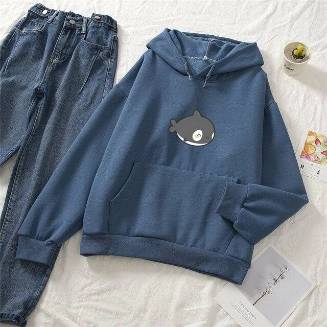Whether you’re chilling out in your hoodie or flying down the street, this kawaii gray whale will always be up for chillin’ with you. Pair this cute hoodie with some comfy bottoms and fresh kicks for an effortlessly chilled vibe.