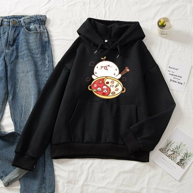 There’s nothing quite like a big, hot pot on a chilly day. Featuring a turnip character cooking up a hot pot with your favorite broth, meat and vegetables. This soft part-cotton hoodie features a kangaroo pocket at the front and is perfect for taking along on casual walks, to work out in, or just hanging out at home.
