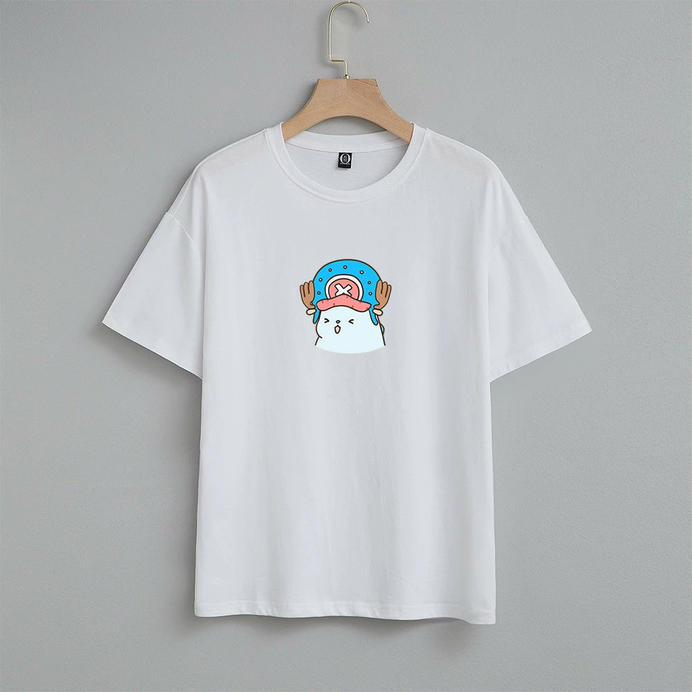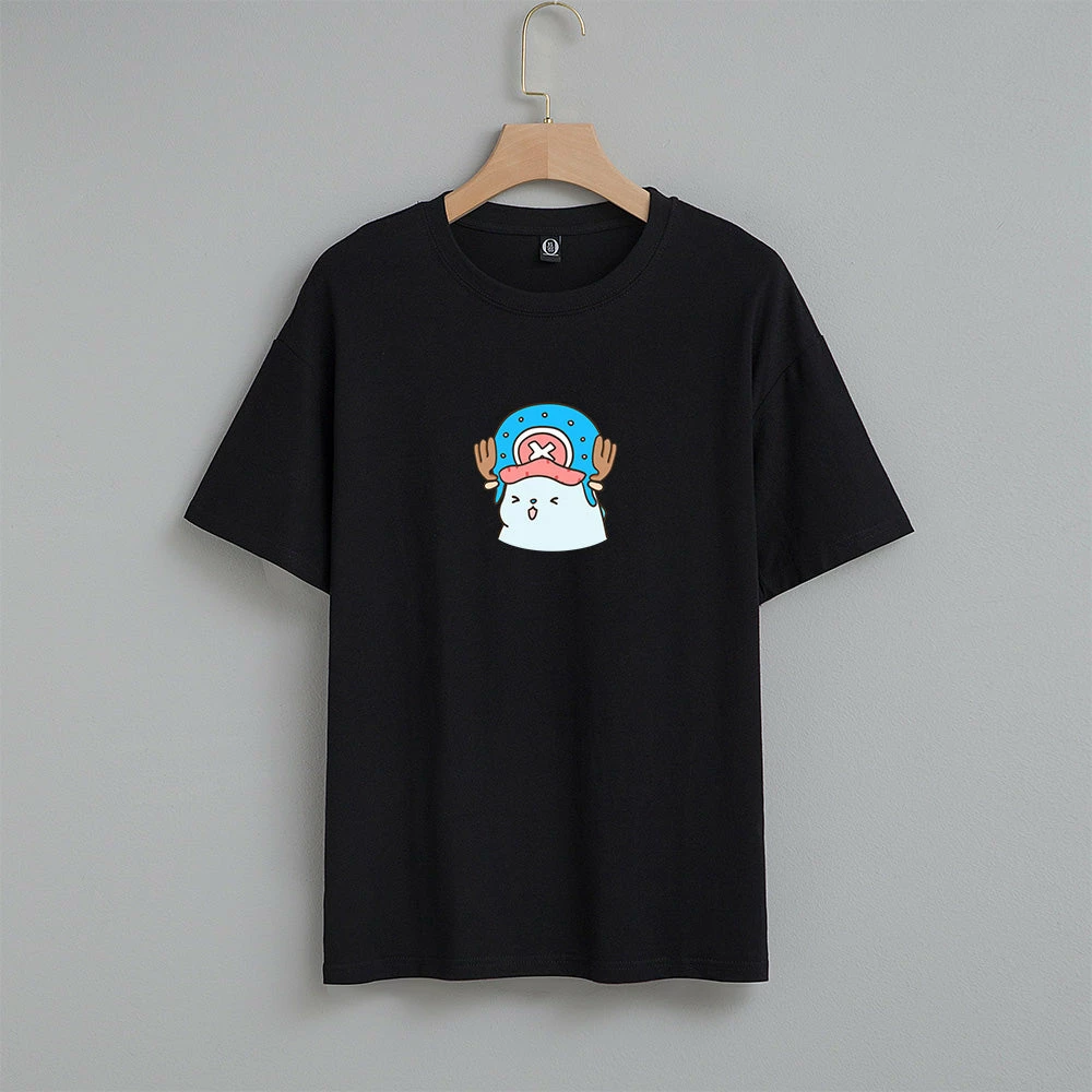 Throw on a high-quality comfortable tee made from 100% cotton featuring Tato the Blue Chubby Dinosaur as Tony Tony Chopper also known as ‘Cotton Candy Lover’ from the Anime, One Piece printed on the front of the Tee.