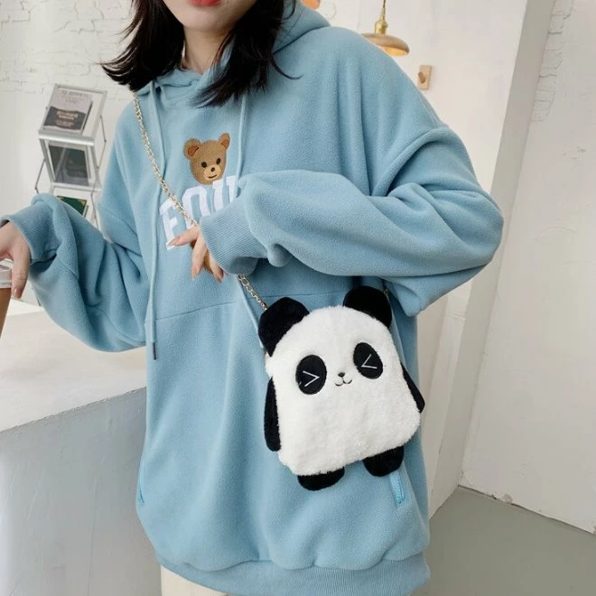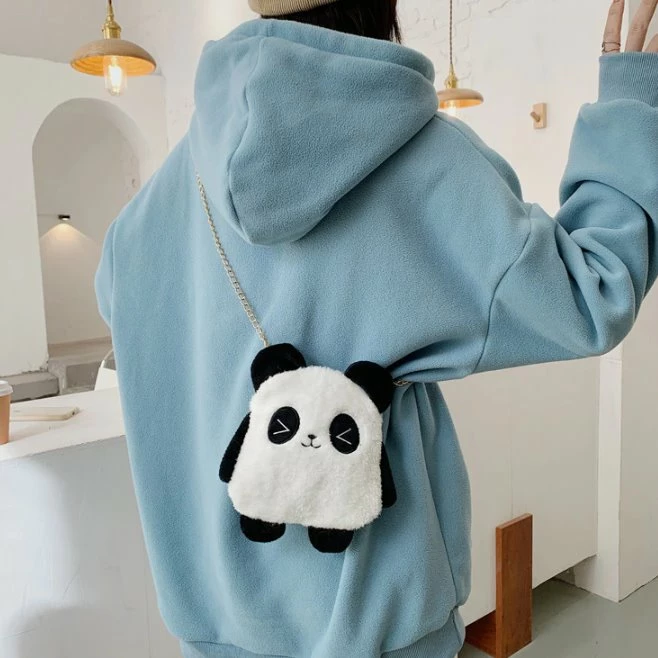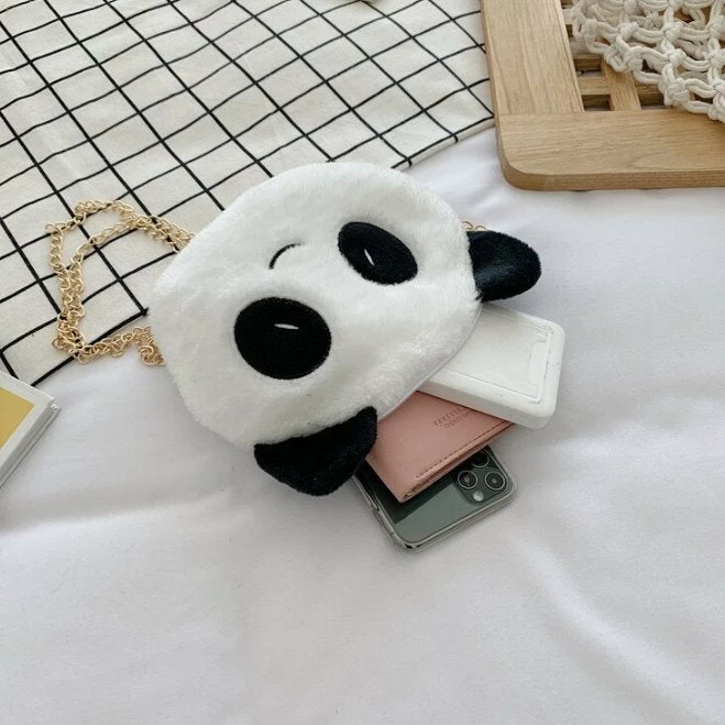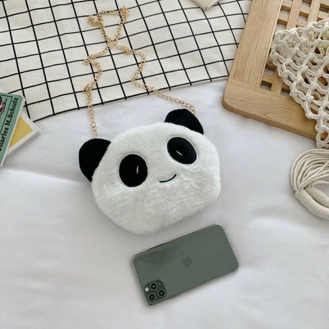 Lovely Panda bags come in one size measuring about 22CM / 8.6IN. Made from high quality super soft fillings with enough space to fit all of your essentials. There is a single golden crossbody chain strap (which can be taken off to turn the bag into a pouch) and the zip easy to open and close. They are perfectly-sized for every occasion, and sure to become a much-loved companion for all ages.