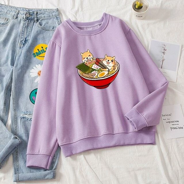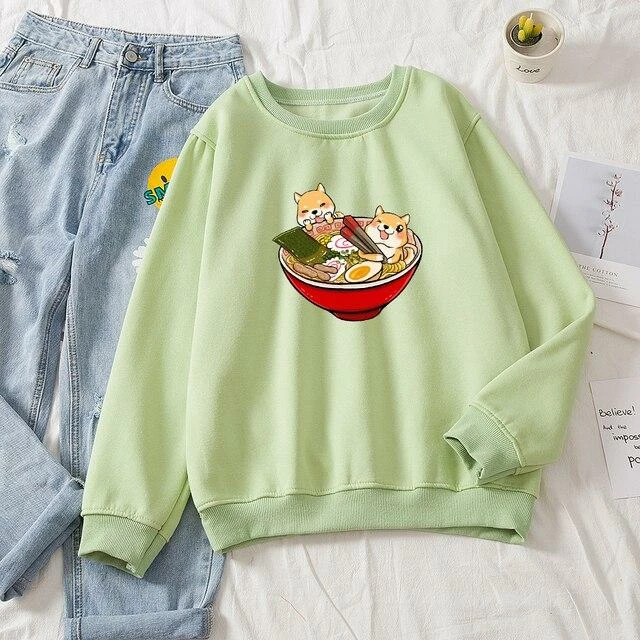 Featuring a range of soft-colored sweaters with two Kawaii Shibas bathing in a delicious Ramen bowl on the front of the sweater. Perfect style and fit for every casual occasion. How would you wear this?