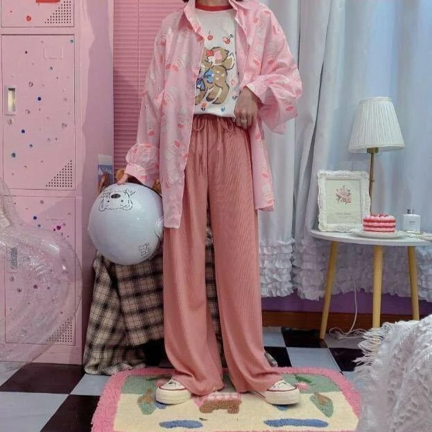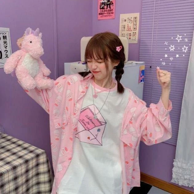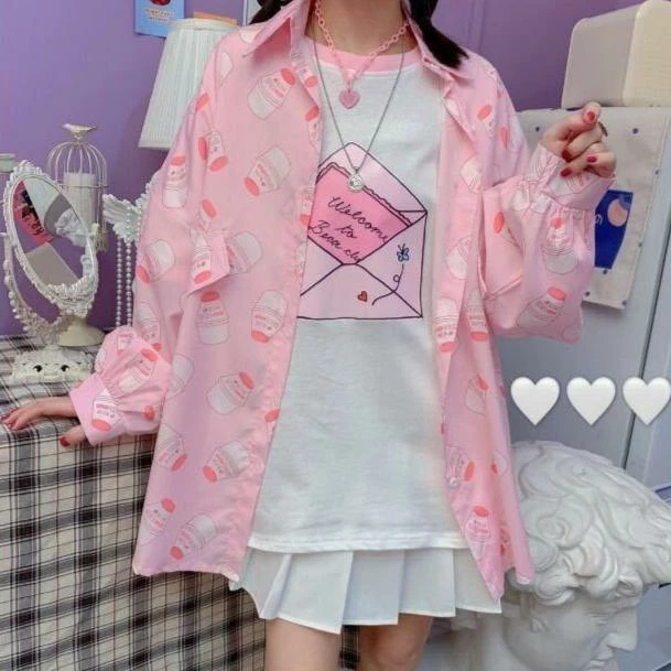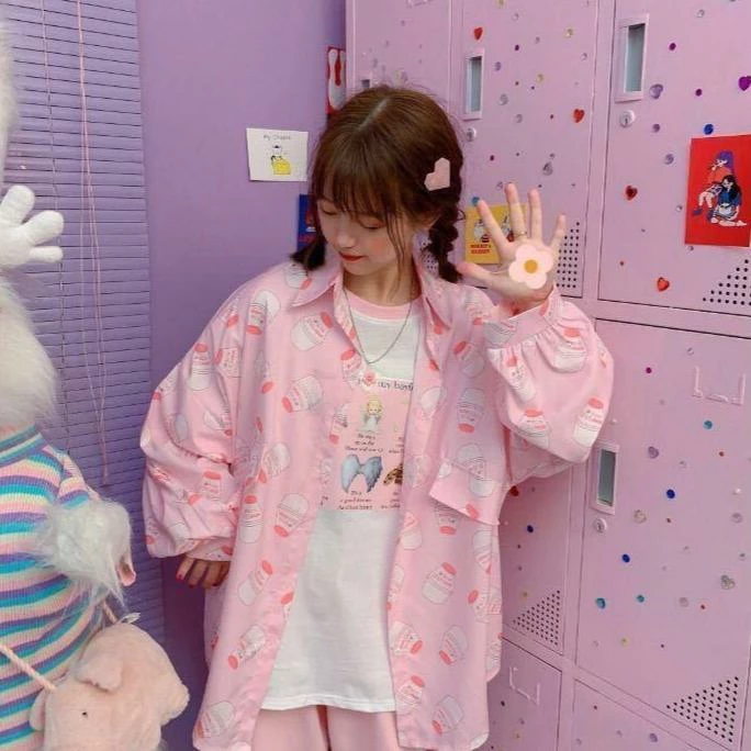 This short-sleeve shirt is a must-have for any Strawberry lover; there is an adorable pink style! With a classic oversized look, this light, thin shirt is great to add a little fun to your wardrobe. The soft material feels just right against your skin, and the unique print features whimsical milk bottles that will have everyone wanting one of their own.