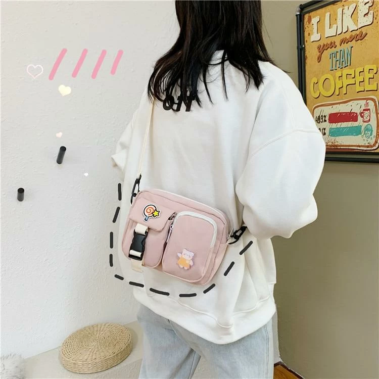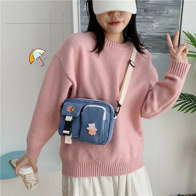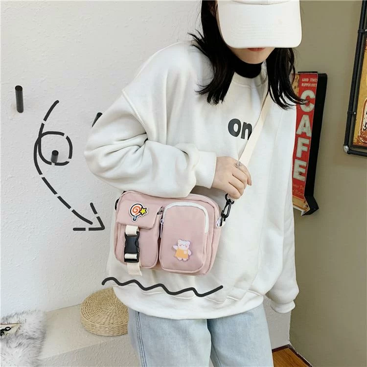 This fun and functional satchel bag features several different compartments, including two secure exterior pockets. The front of the bag also features cute bear and lollipop pins that makes this bag so adorable! Made from high-quality waterproof materials with enough space to fit all of your daily necessities.
