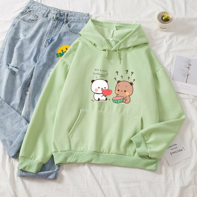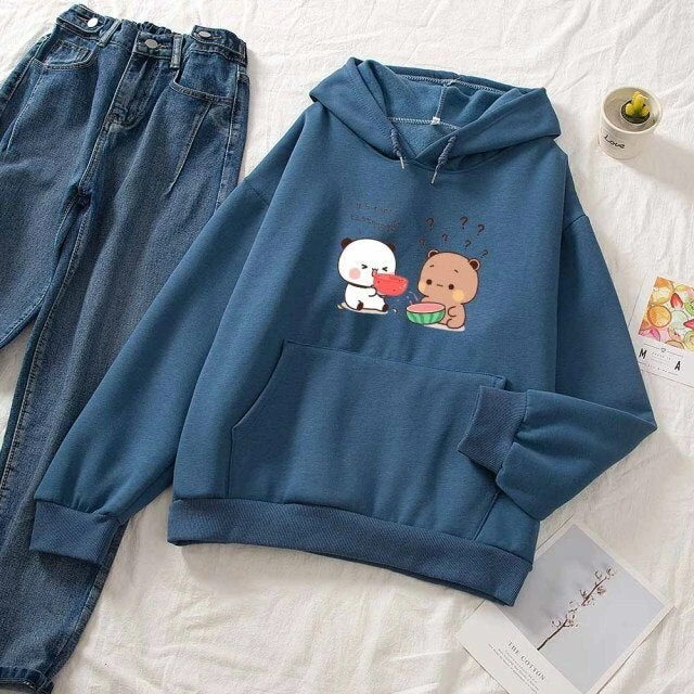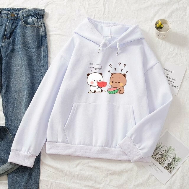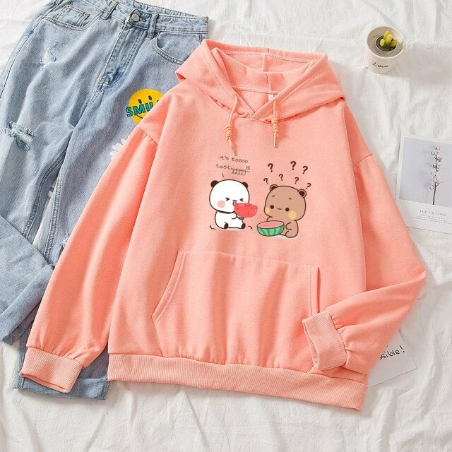 Perfect as a gift or a treat to yourself, this part-cotton hoodie features two bears sharing a refreshing watermelon. This hoodie is going to look great with your favorite pair of jeans or sweatpants.