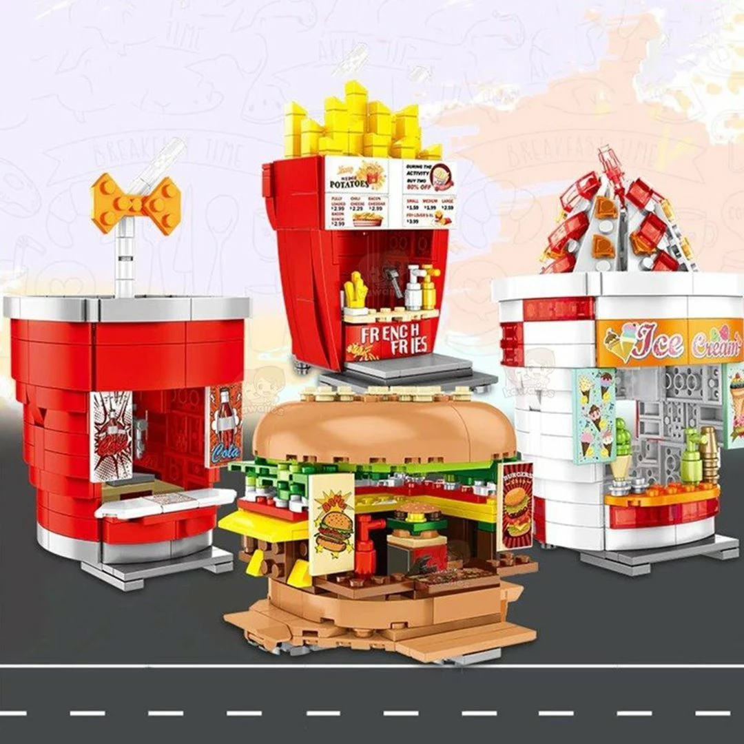 Each food stand resembles a life-sized stand that you can find in a zoo, park, or the city streets; an awesome collection to add to their city.