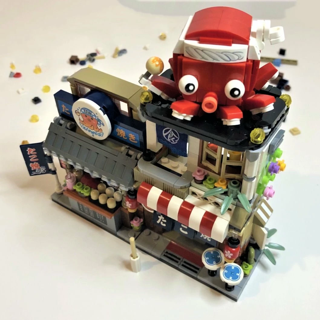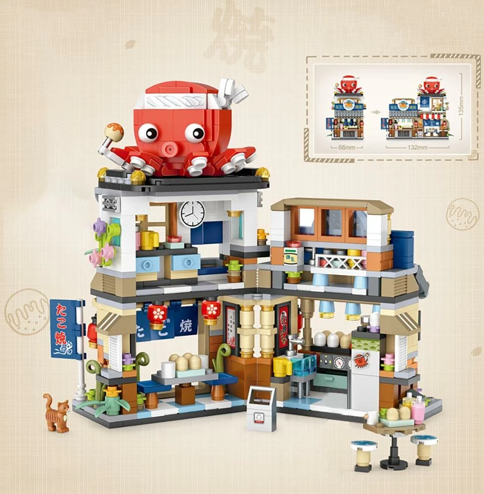 Bring the taste of Japan into your world with this foldable Japanese restaurant. This Japanese Takoyaki Set contains 722 micro blocks to help you build a brick-by-brick slice of modern Japanese culture.