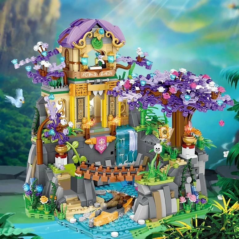 Create the most beautiful scenes from your favorite worlds with the Waterfall Japanese Purple Sakura Temple Building Blocks set! This set will bring to life; the waterfall, temple, and cherry sakura trees. Imagine creating a magical world where friends have adventures together.