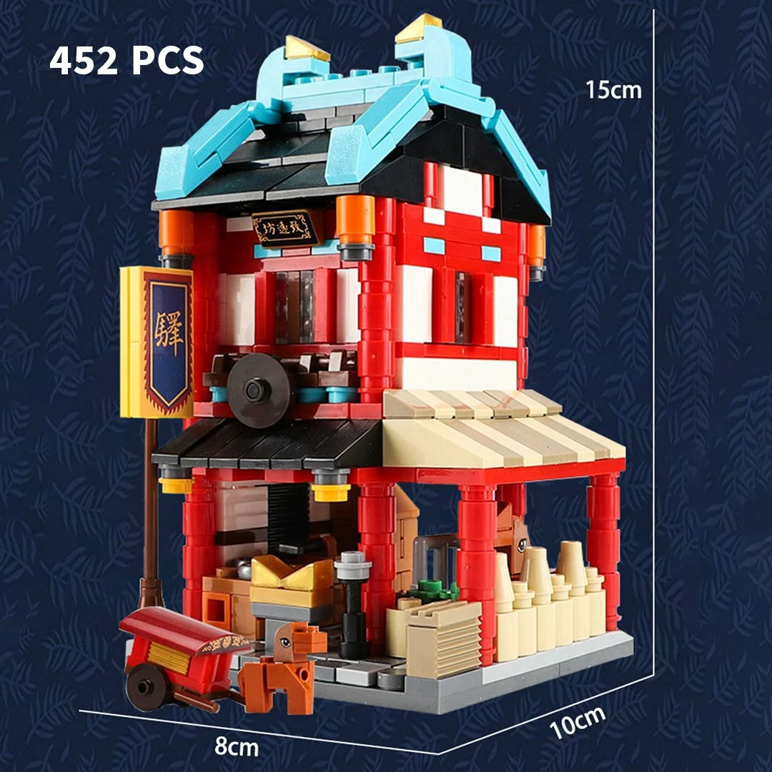 Our final cute Yanping street store is the Horse Stable station. After a long day shopping, it is home time, and in ancient times, horses were the most popular form of transport. With the exquisite details as shown. It contains 452 pieces.