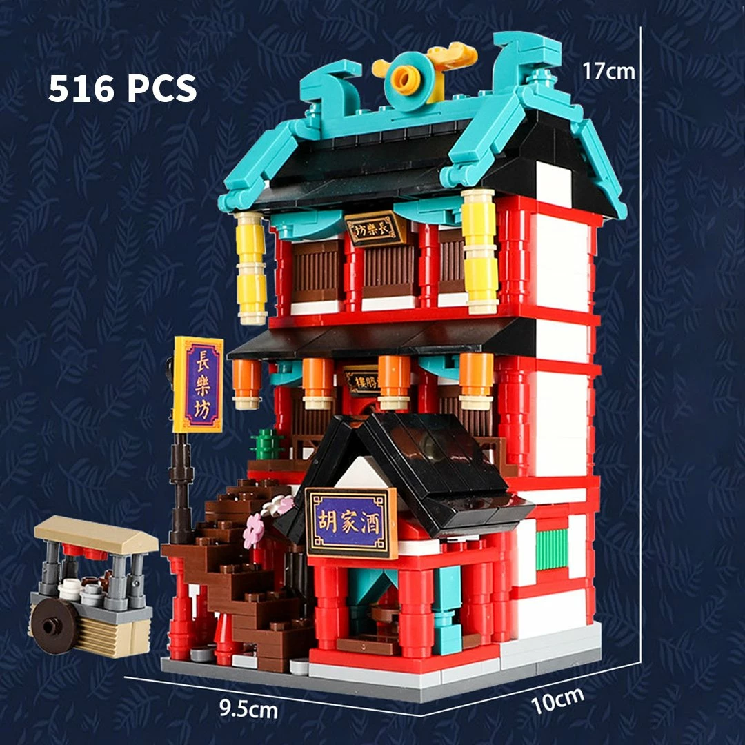 Our second cute Yanping street store is a wine store. The most popular and national drink is Baijiu, is a clear distilled liquor, translating as “white wine”. Maotai or Moutai is a brand of baijiu. With the exquisite details as shown. It contains 327 pieces.