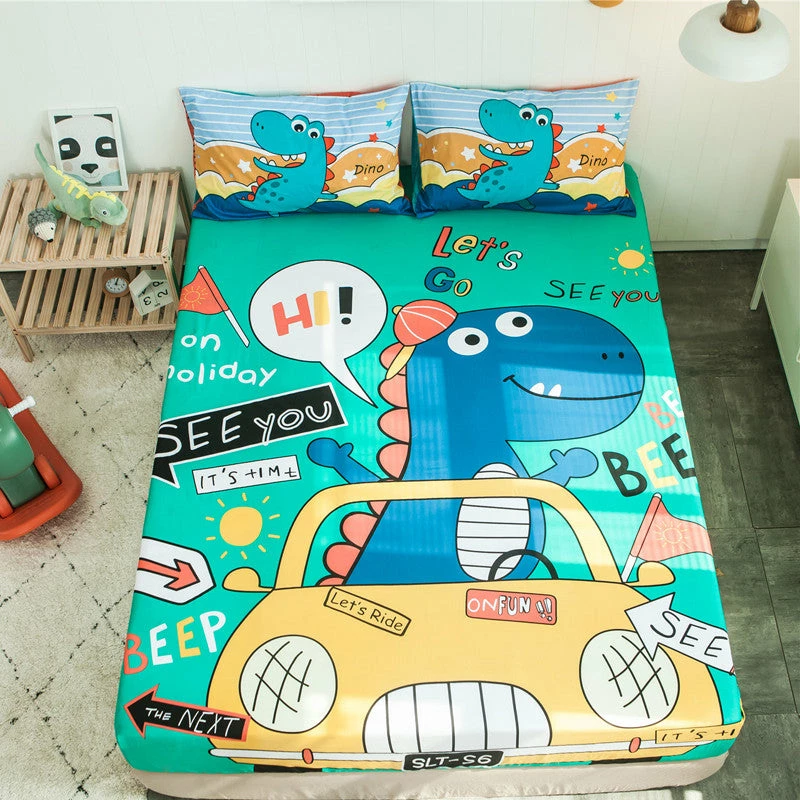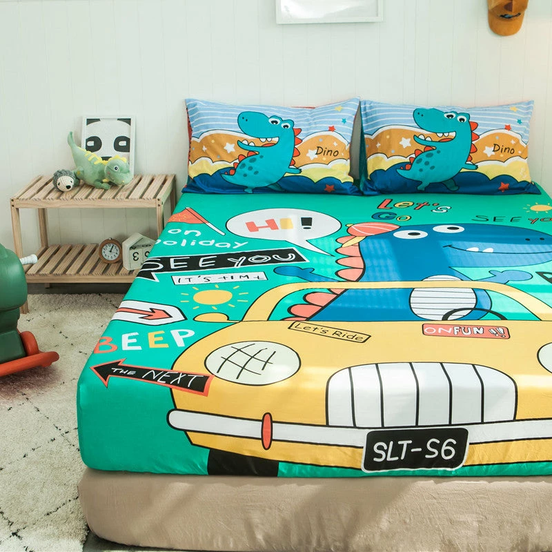 Your children will love sleeping in a dinosaur-themed bedroom. Roaring dinosaurs of all shapes and colors are featured on our fitted sheet. Let your child sleep in a prehistoric treat – the Roaring Dinosaurs Fitted Sheet.