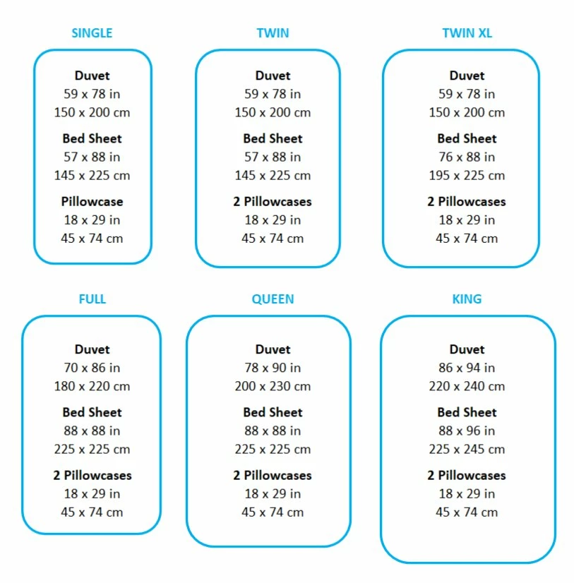👑 International duvet size: Single, Twin, Twin XL, Full, Queen & King