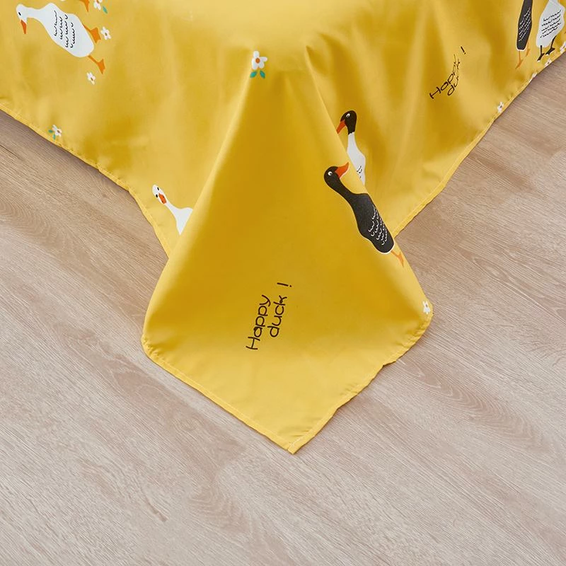 The Happy Ducks print bedding set will bring a smile to your baby’s face. This adorable print features ducks and flowers in bright, cute colors against a sunny yellow background