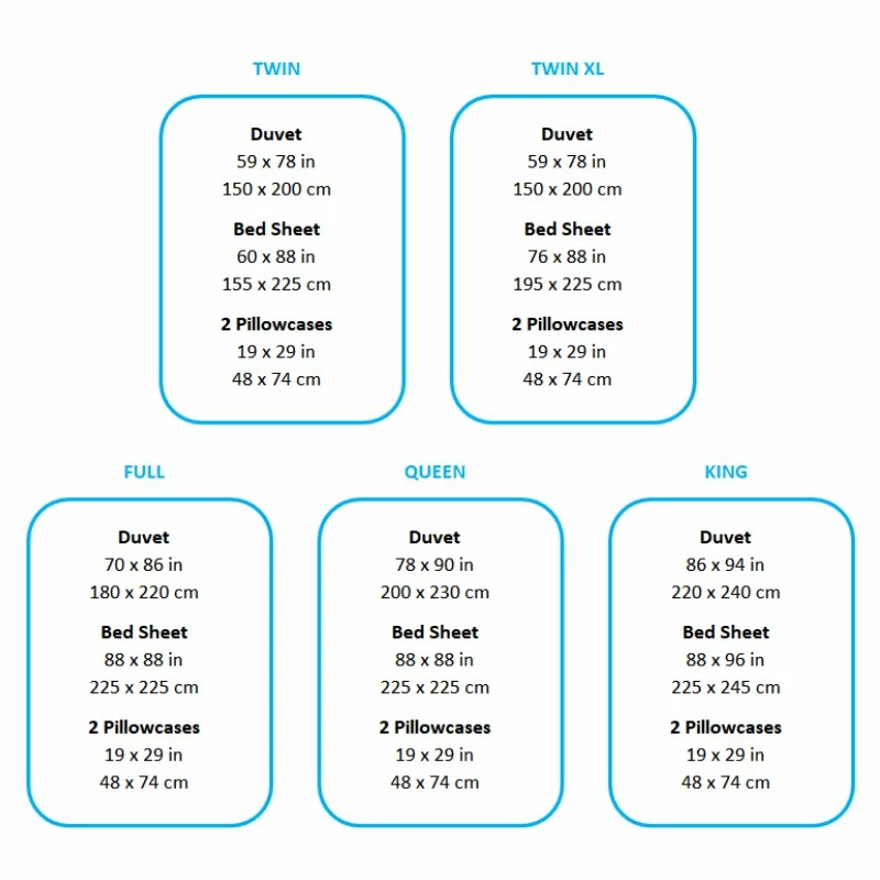 👑 International duvet size: Twin, Twin XL, Full, Queen & King