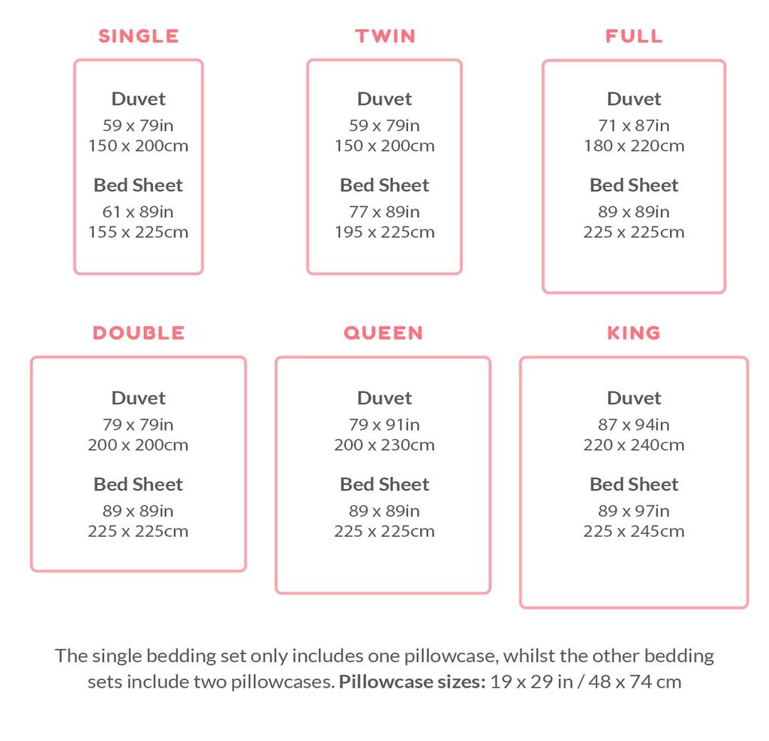 👑 International duvet size : Single, Twin, Double, Full, Queen & King