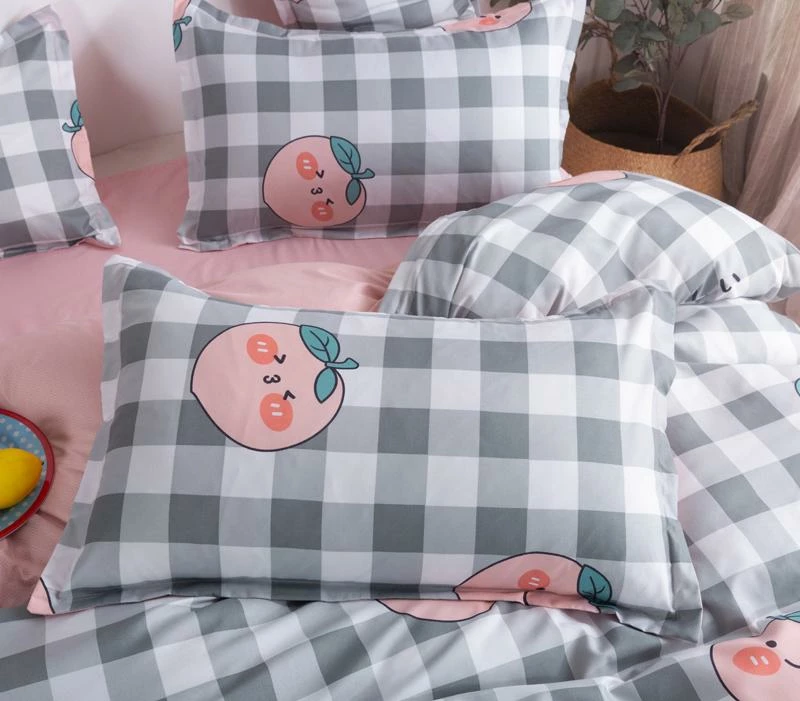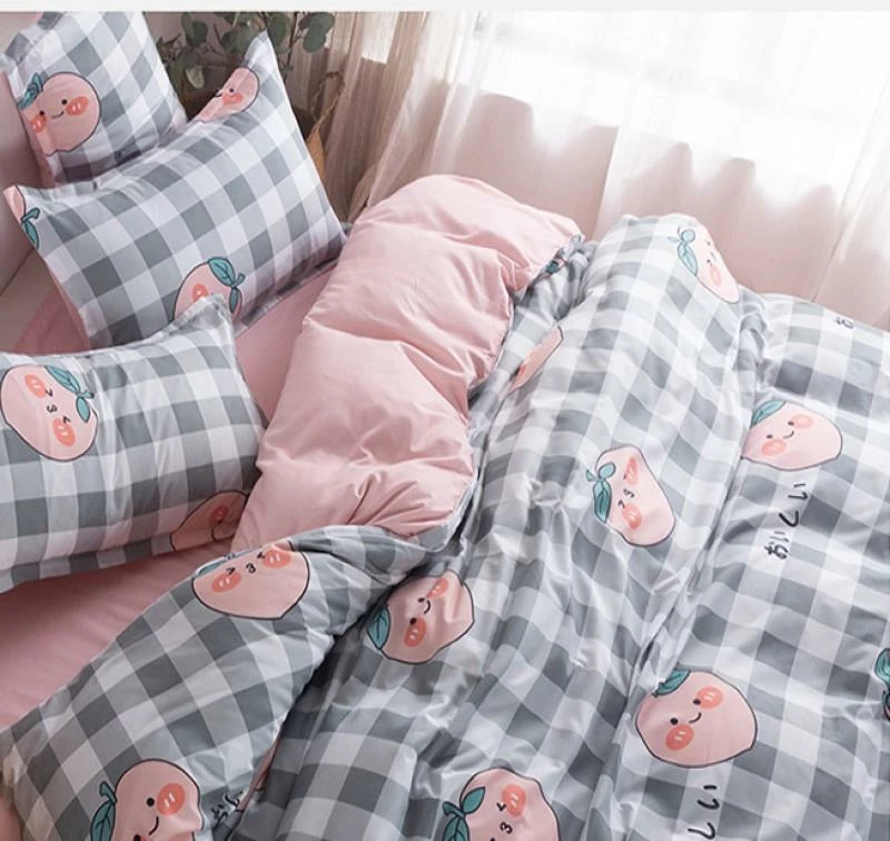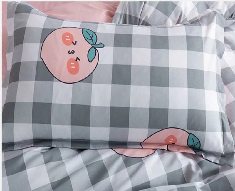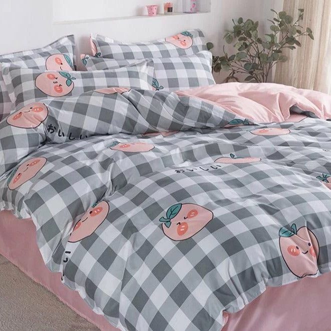 Start your night by jumping into a kawaii fruit-themed print bedding set