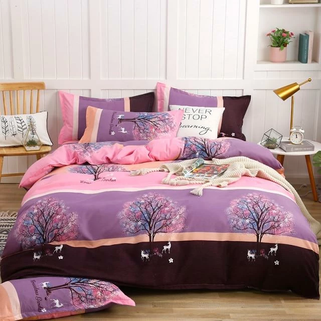 A majestic tree silhouette fills the purple pink sky in a magical, almost dreamy scene that is sure to delight of all ages. The vibrant colors and romantic design will bring some imagination to their room. Let your imagination run wild with these lovely bedding set.