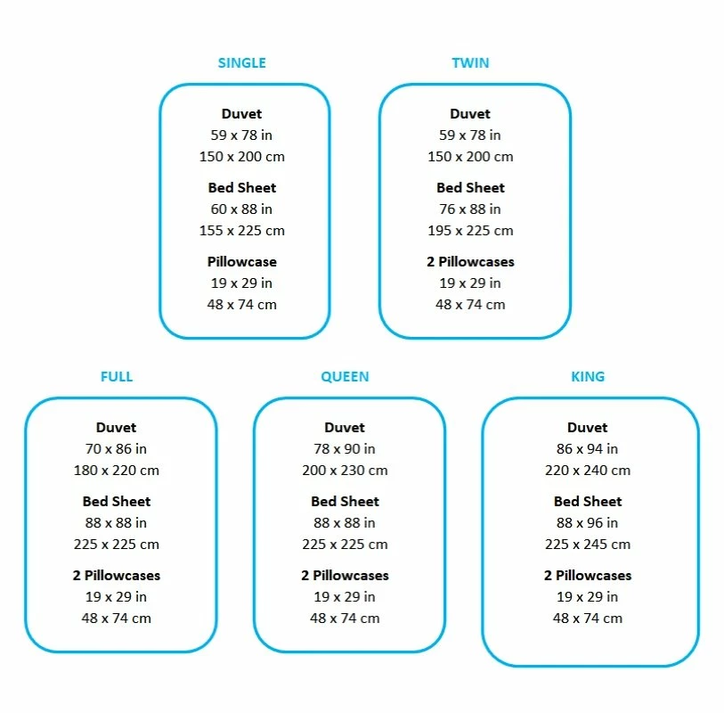 💖 International duvet size: Single, Twin, Full, Queen & King