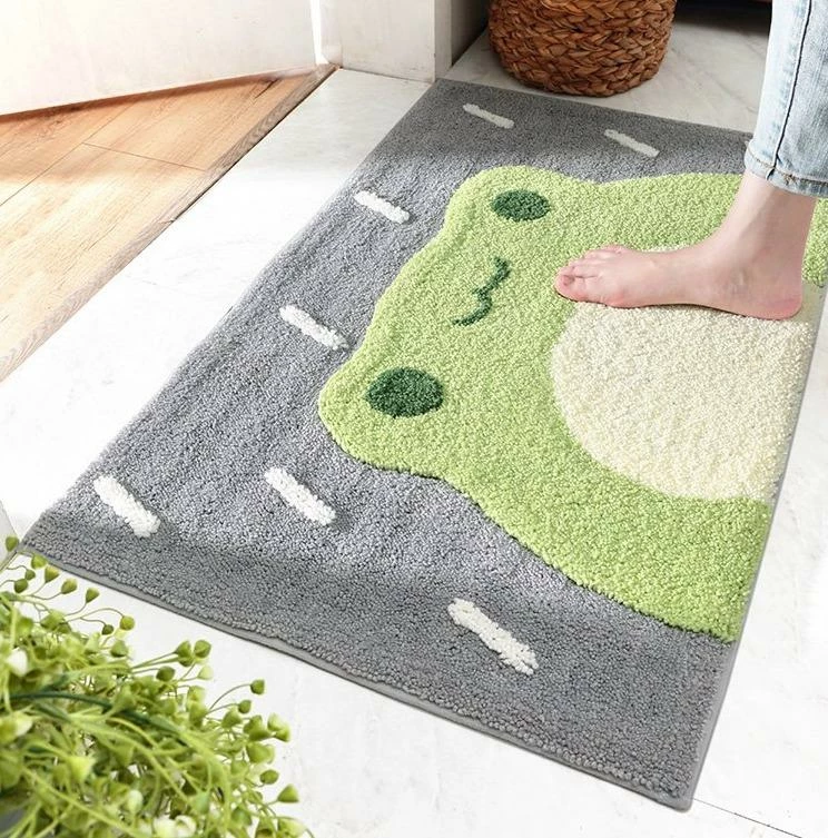 Tough enough to stick around with your little one throughout the years, yet soft enough to offer you a warm embrace while sinking into bath time luxury. Sporting an adorable smiling frog, this charming bath mat welcomes you into the relaxing, nurturing moments of your day. Crafted with microfiber material, our bathroom mat protects your floor from wetness while cushioning your toes.
