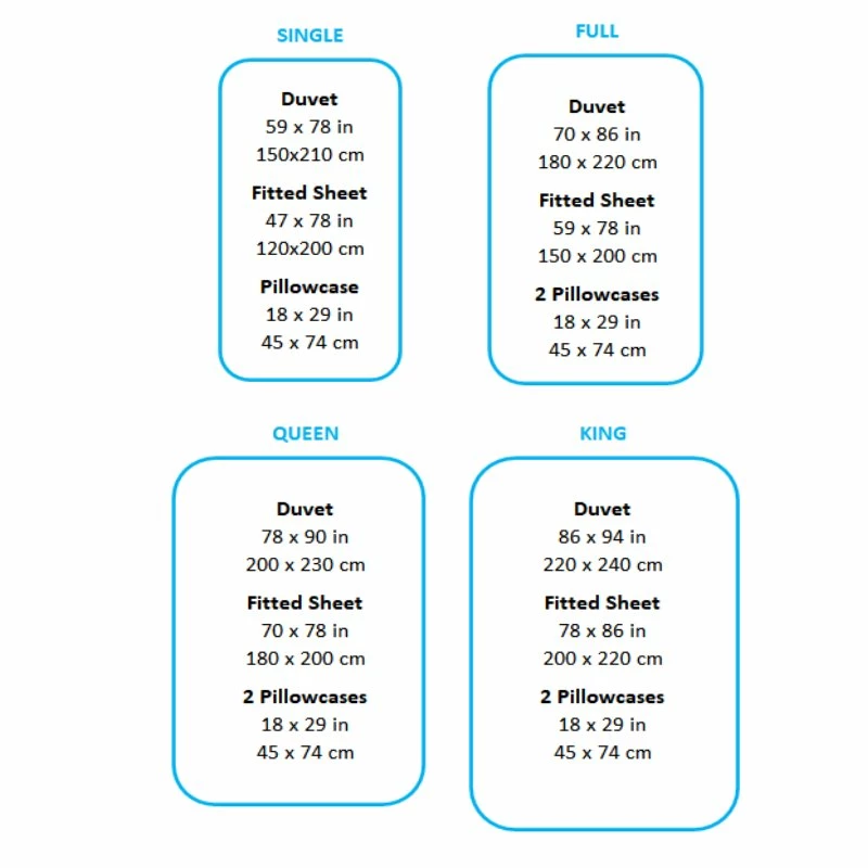 👑 International duvet size: Single, Full, Queen & King