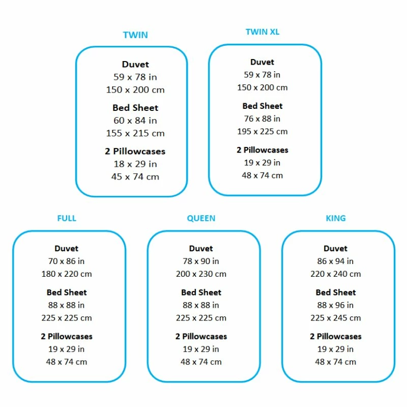 👑 International duvet size: Twin, Twin XL, Full, Queen & King