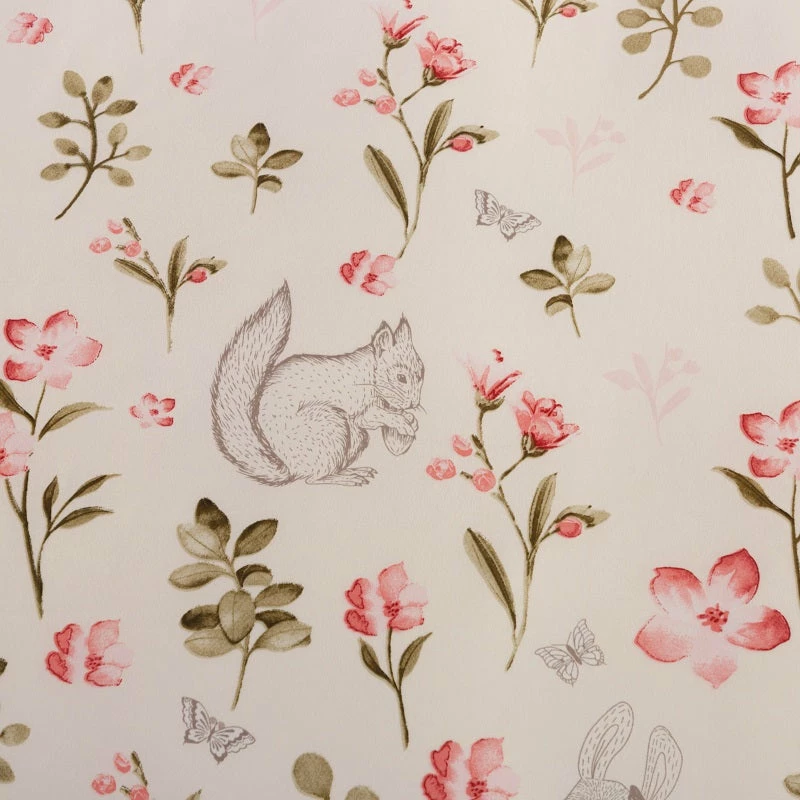 Watch your child drift off to sleep with our Squirrel in a Meadow print bedding set. This whimsical bedding has a two-sided print for both occasions. The illustrated background shows a colorful forest landscape; the curious squirrels and deer will make the imagination roam.