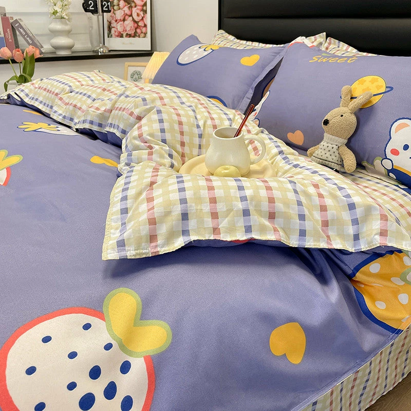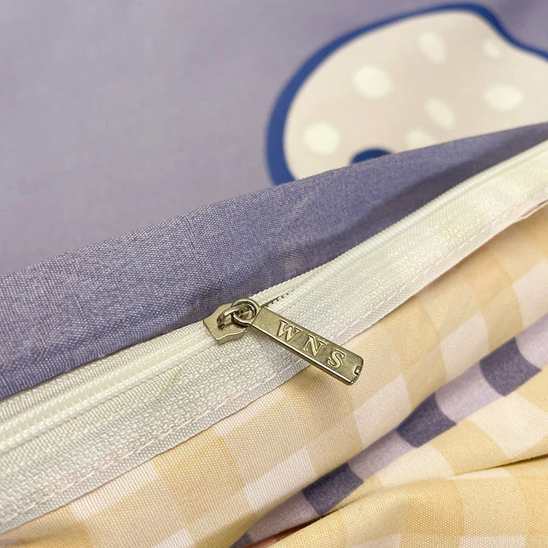 A kawaii ube colored bedding set to transform your bedroom into a relaxing haven so you sleep and wake up with a smile.