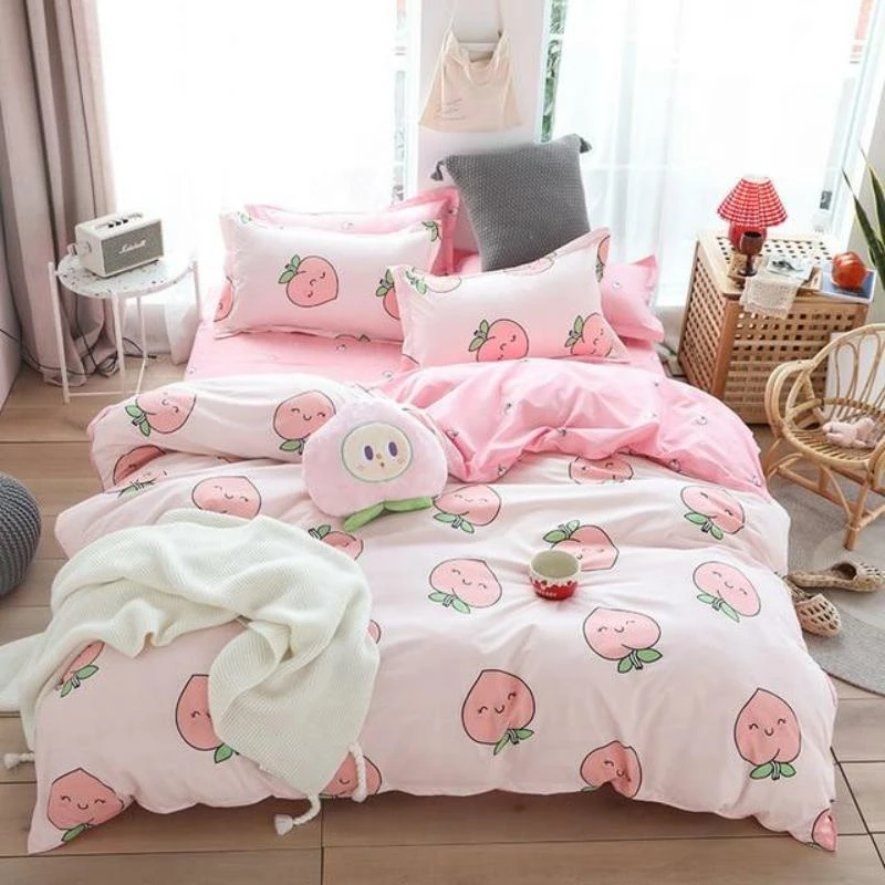 The Cute Strawberry and Peach Print Bedding set will bring a unique Japanese decorative style to your bedroom. It is made from 100% premium brushed Polyester Microfiber, which gives you the ultimate soft feel at a great value. It’s comfortable in any seasons and keeps you cozy warm in the winter and breathable in the summer.
