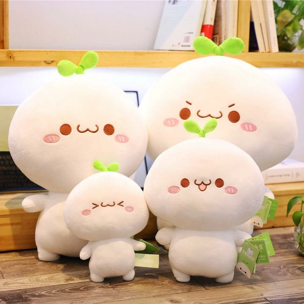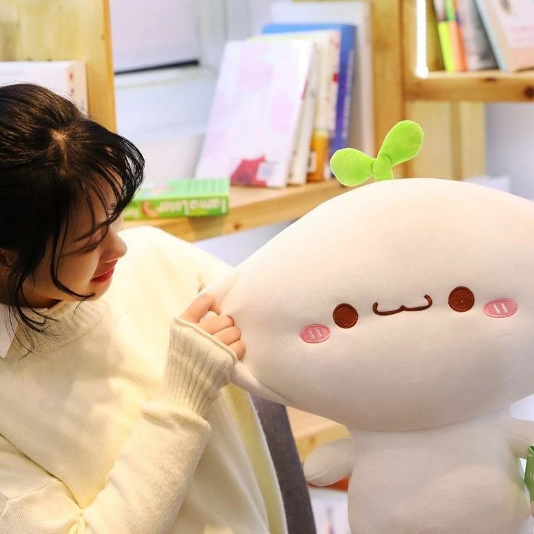 These adorable plushies are inspired by the radish, one of the most loved vegetables in Japan. This family is best known for their unique faces with bright green sprouts and are  inspired by the shape and delightful colors of the radish. This family makes an excellent gift for anyone young and old.