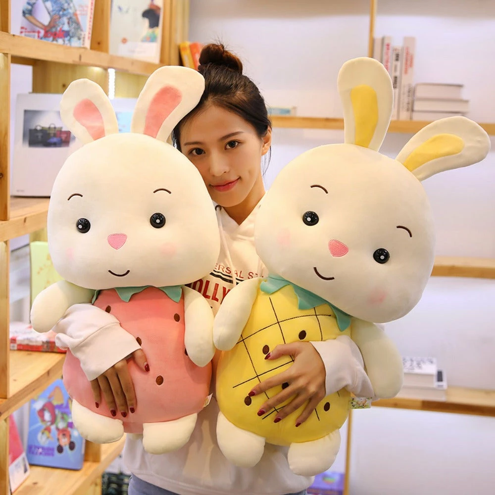 These plushies are here to bring some joy and fun to your life whilst they help relieve your anxiety and stress! Featuring a super soft bunny and piggy plushie dressed up in a fruit outfit. Choose your favorite plushie to keep you company all day and night long. These plushies make a great gift for kids of all ages, especially those that love animals.