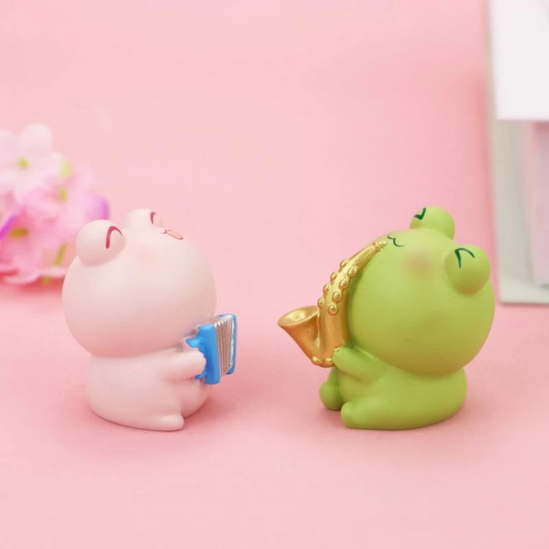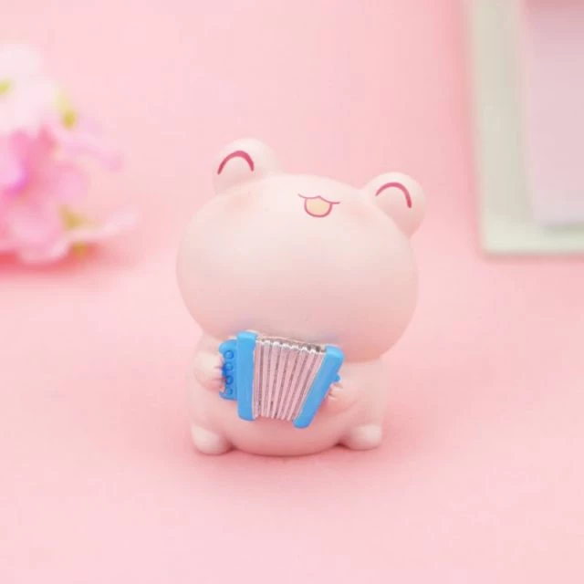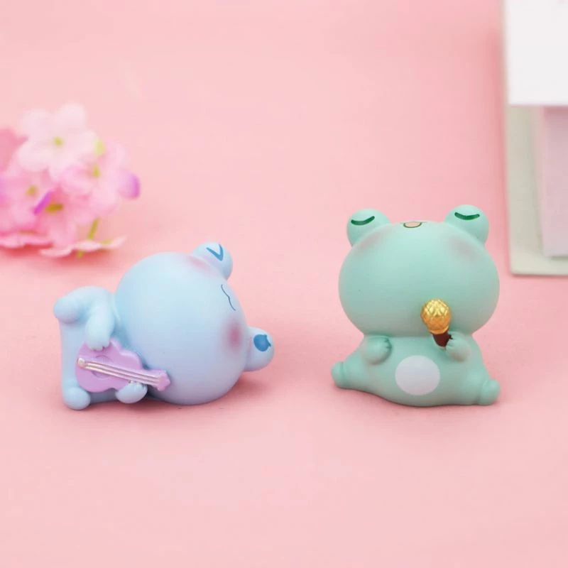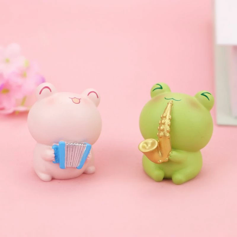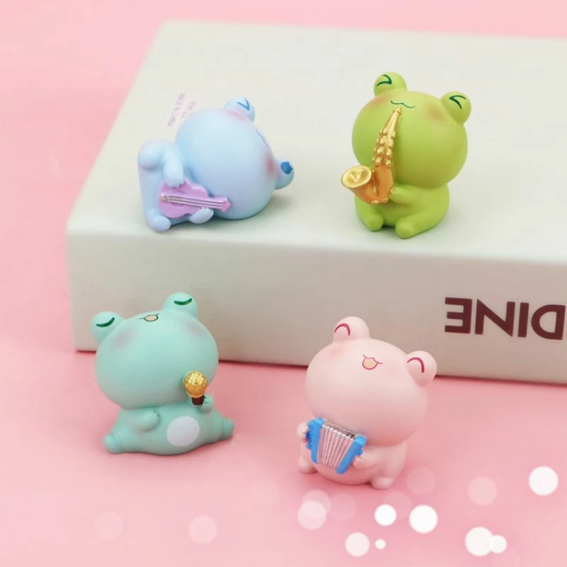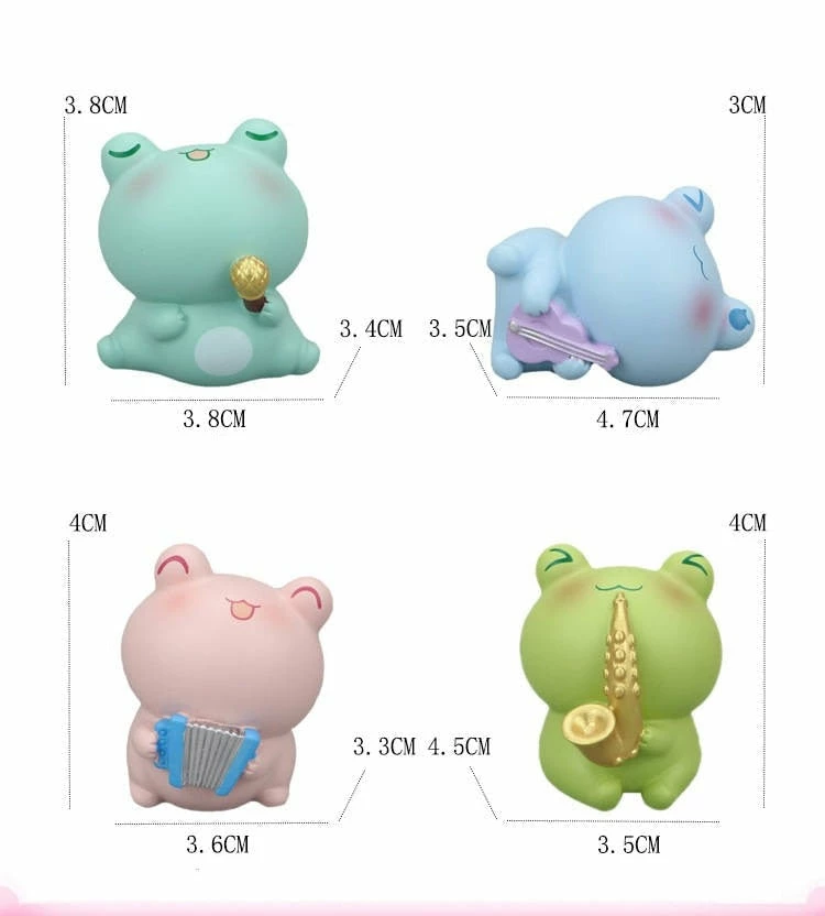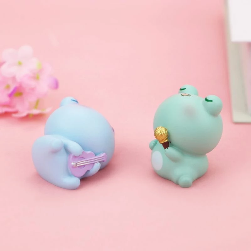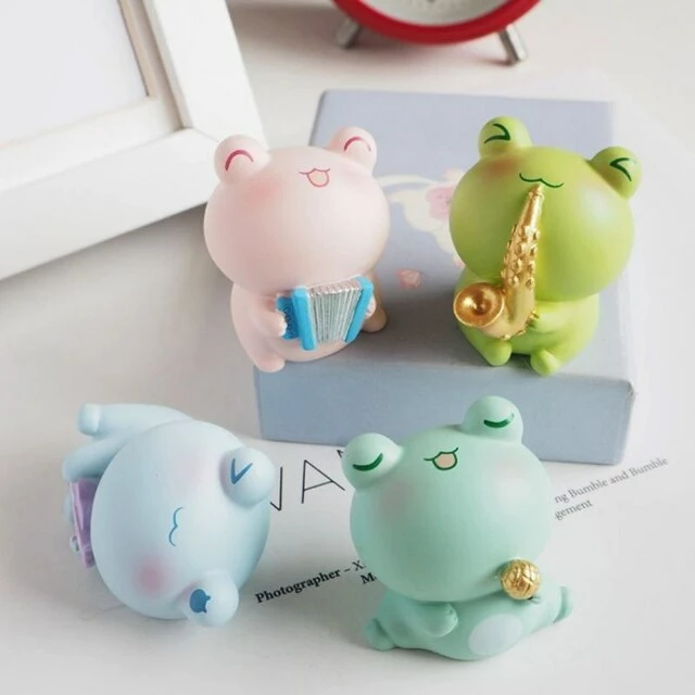 These are figurines featuring amazing frogs playing in a band! Just look at their adorable cheerful faces whilst they play their favorite instrument. Which frog will you take home today or will you be taking all of them home?Â
